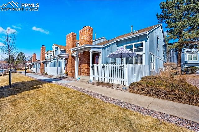 Quiet 3 bedroom, 4 bath end unit townhome with central AC! Enjoy the relaxing sounds of nature from your private patio that overlooks Cottonwood Creek and has a gorgeous Mountain View! This delightful townhome has plenty of natural light and tons of storage. The main level has the kitchen, dining area, and living room, along with a gas fireplace and vaulted ceiling. Walkout to your private patio from the dining area to water your flowers or relax and read a book! The kitchen has a breakfast bar, a full compliment of appliances, a new microwave, brand new range oven, newer refrigerator, a pantry, a built-in spice rack, and a surprising amount of storage! The master suite on the second level has a vaulted ceiling, skylight, ceiling fan, double closets, storage, and an adjoining master bath (the shower has a great bench!). The basement serves as the third bedroom with its own craft and/or sitting area, along with a ceiling fan and private 3/4 bath. If you miss the incredible amount of storage in the garage, go back and look again because the garage has shelves, cabinets, and more shelves and more cabinets - and it still fits two cars! The basement laundry room is large and has storage shelves and cabinets, and the washer and dryer are included! The well maintained community is served by a seasonal pool, tennis courts, and clubhouse. Guest parking is nearby, and the property has quick access to I-25, and is only 10 minutes to the Air Force Academy, 2 minutes to Sam's Club, and minutes from all the eateries offered on North Academy BL. King Soopers is only 5 minutes away as well - great location!