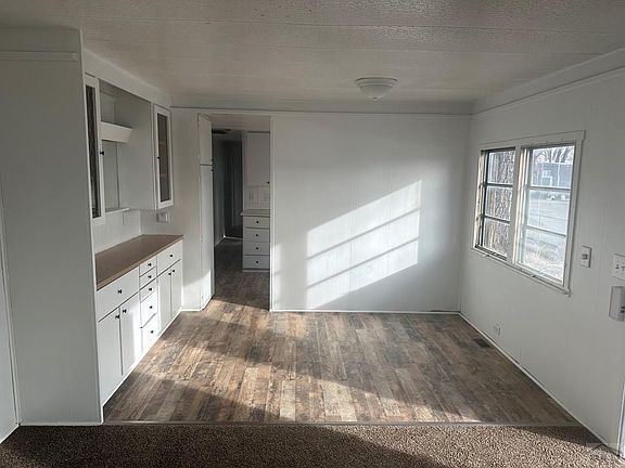 This prettied-up home is on the edge of the Dreamland Mobile Home Park and has new flooring, toilet and shower/tubsurround liner, and paint. The appliances stay plus 3 sheds, a carport, and a covered deck. The yard is fenced and it comes with a raised garden bed. Modest lot rent of $525 includes trash service