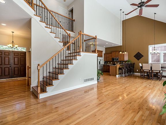 Stunning 6 bedroom 3 1/2 bath home on a wooded lot in the highly sought after Winding Falls neighborhood! This beautiful home features a functional open floor plan with soaring vaulted ceilings, hardwood floors, a fireplace, and a gorgeous first floor master suite with his and hers closets. The upstairs has three spacious bedrooms and a full bath. The walk out basement provides a wonderful space for entertaining guests with a second family room, wet bar, and a deck that overlooks the back yard. There are also 2 additional bedrooms and an exercise room on this level. This home has large windows throughout providing tons of natural light and picturesque views from almost any room. Don't miss out - it will not last long - Schedule your private showing today!