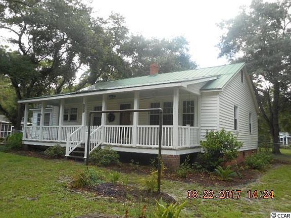 Wonderful Georgetown location with easy access to The Waterfront. This 4 bedroom, 2.5 bath home offers hardwood floors, gas fireplace, fenced back yard, corner lot, 2 car garage, beautiful Oak trees. Modern double hung windows, metal roof, updated electrical, modern kitchen cabinets. Eat in kitchen. Beautiful built in shelves in the living room. Wonderful country stlye front porch just waiting for your rocking chairs. Easy drive to Charleston.
