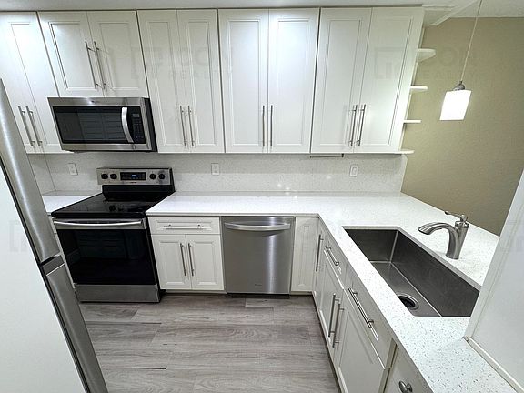 Bright and recently updated 2-bedroom 2-bathroom condominium unit on the first floor in a great location within quiet community in Coral Springs. Unit features includes first floor entry; updated kitchen and bathrooms, including quartz countertops and stainless appliances; tile and wood look laminate throughout; washer and dryer in unit; ample storage space; directly across from the community pool area; and assigned parking space. Community features include pool and guest parking. Conveniently located near great schools, shopping, restaurants, and entertainment. Association approval required. All ages welcome. Water and trash included. First month's rent, last month's rent, and security deposit due upon move in.