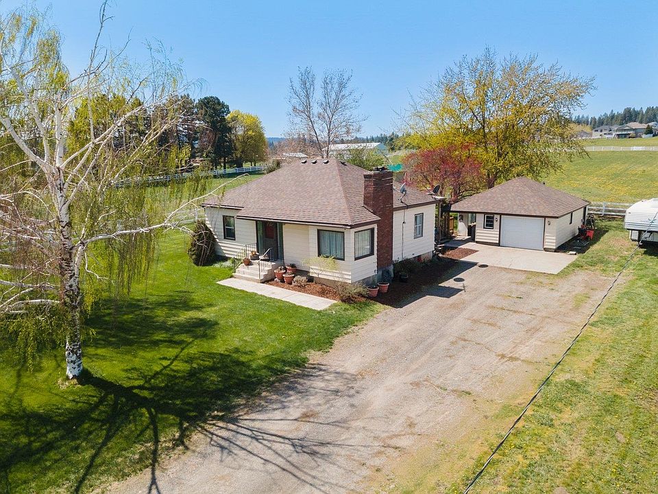 This charming south valley rancher is situated on a newly designated S Rodeo Drive. This quiet 5 acre location benefited when S Barker was realigned for the Morrison Ranch development to the east. The beautiful territorial views & this cute & well-kept home make for a wonderful country setting. The home offers 4 bedrooms & 2 bathrooms, spacious front room & designated dining room are complemented with the beautiful original hardwood floors you’d expect in a home of this age. Fireplaces on both levels, main floor laundry & a mudroom are nice features as well. The lower level is finished & offers what could be an apartment or in-law set-up featuring a separate entrance. Outdoors you’re surrounded by split rail fencing, a deer protected & irrigated garden area with chicken coup, pasture, oversized covered patio, spacious 1 car garage & abundant space for the shop & or barns of your dreams. Great access to I-90 & Liberty Lake. Vera water, central heat & air conditioning!