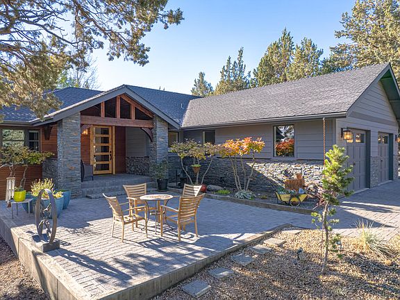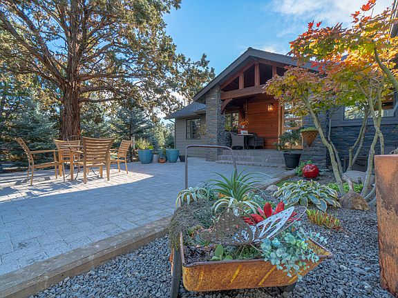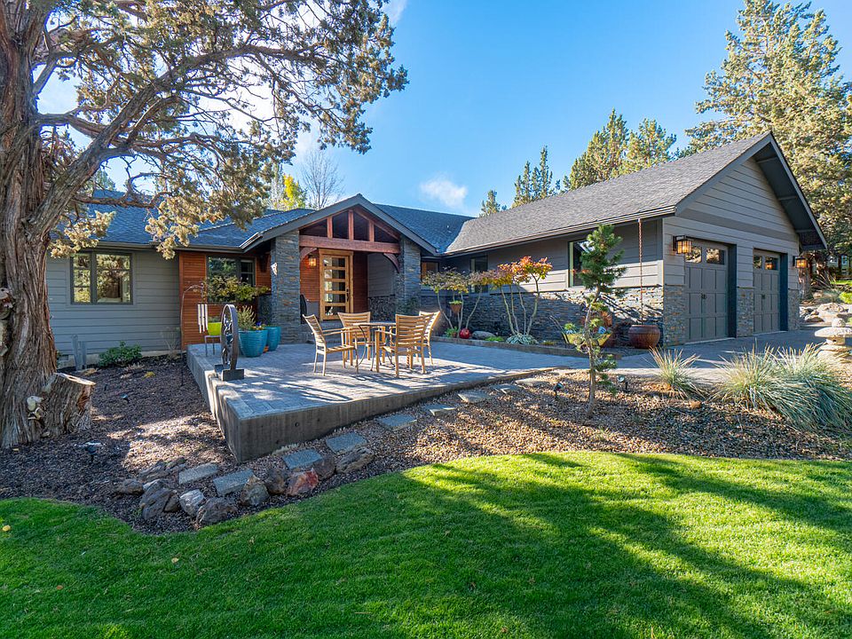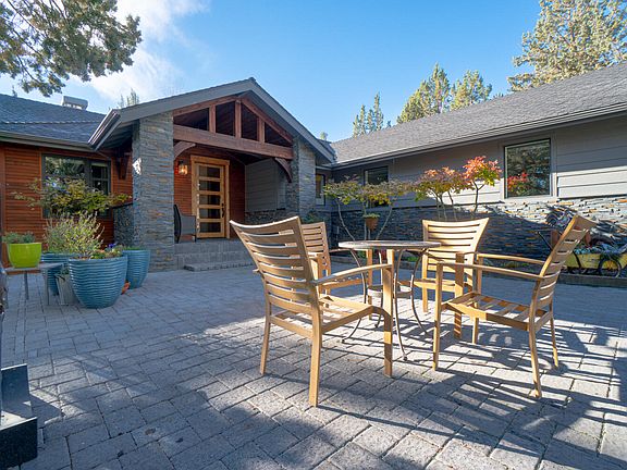 Located in the original gated community of Eagle Crest Resort on a private cul-de-sac, this stunning single-level custom home has been thoughtfully remodeled and updated with timeless finishes throughout. The open-concept floor plan features vaulted ceilings, hand-troweled walls, hardwood floors, 8 ft wood doors, custom built-in features, updated bathrooms, a gas fireplace, and a new HVAC system. The chef's kitchen boasts slab granite countertops, a gas range and hood, and a dry bar. The spacious primary suite has a walk-in closet with built-ins, a double sink vanity with slab quartz, a walk-in shower, and 8 ft custom-made mirrored barn doors. Two additional guest rooms, a full bath with a walk-in shower, a half bath, an office/tv room, and a large utility room complete this outstanding floor plan. Enjoy the lush landscape and peaceful setting from the lovely paver courtyard in the front or the expansive paver patio in the back.