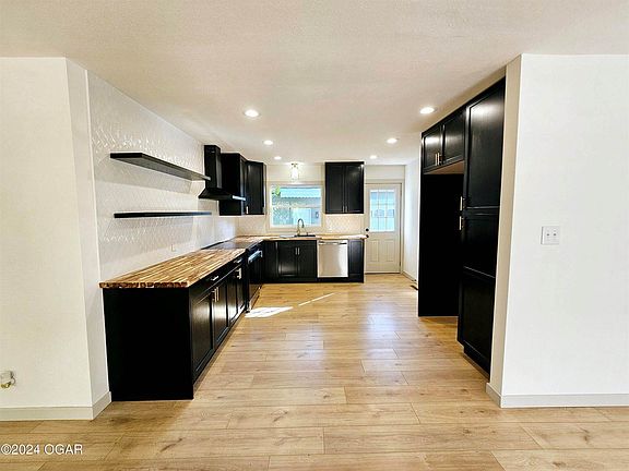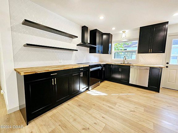 Welcome to this beautifully remodeled modern home, where an open floor plan creates a seamless flow between the living, dining, and kitchen areas, perfect for gatherings with family and friends. The heart of the home is the inviting kitchen, featuring warm butcher block countertops, elegant black cabinets with gold accents, and plenty of storage for all your cooking essentials. Sunlight pours in through large windows, filling every corner with a cozy, welcoming glow. With three charming bedrooms, two stylishly updated bathrooms, and a spacious two-car detached garage, this home is tucked away in a peaceful neighborhood that offers both serenity and convenience.