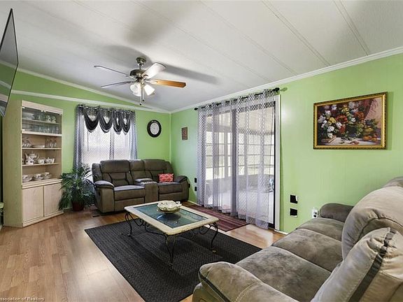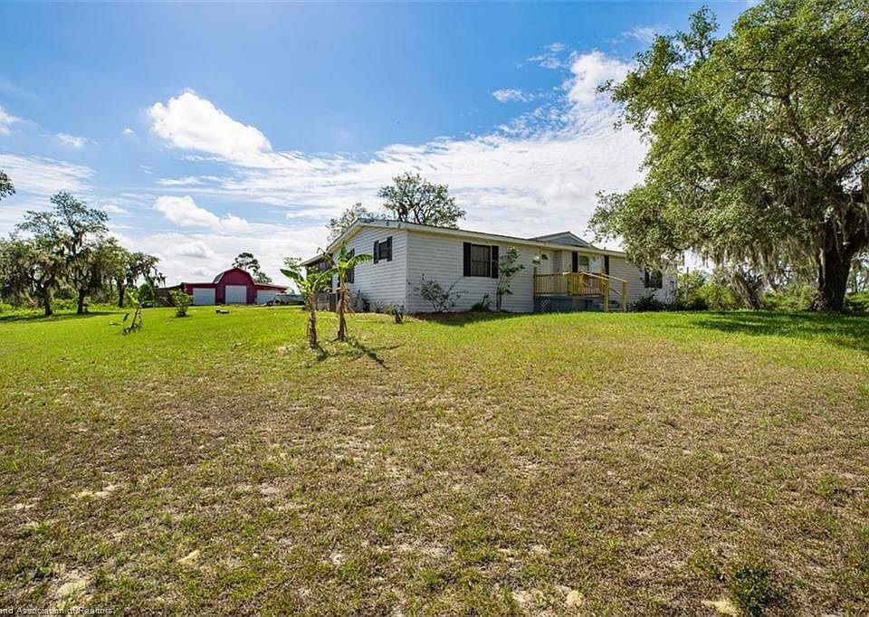 Nestled under a picturesque Oak shade tree on nearly 5 sprawling acres, sits this 3 bedroom, 2 bath, manufactured home. Not your average manufactured home by any means and features several updates in the last few months including but not limited to NEW vinyl plank flooring, NEW kitchen cabinets, counter tops, & backsplash, NEW ceiling fans and fixtures, NEW plumbing, NEW water filtration system (Owned - NOT rented). Tons of space here with both a living room and a family room, plus a huge enclosed porch that is a great extension to your living space. Excellent home to entertain in. Host all the holidays at your home! New spacious kitchen with lots of cabinet and counter space. There is also a pantry closet too for additional kitchen storage. Big mud room with lots of storage. The laundry room is in the enclosed porch. Huge master bedroom with a private master bath that features an oversized garden soaking tub. Crown molding throughout, there are tile floors and vinyl plank flooring too! About 3 acres (out of the 5) are cleared - the rest is gorgeous "Old Florida" property with an abundance of wildlife. Home is on a concrete slab with anchors every 4 feet for added stability and peace of mind. The Huge 3 bay barn is also on a concrete slab and features electric & plumbing!