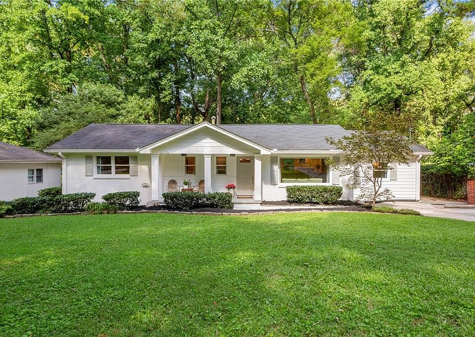 This renovated white brick ranch checks all the boxes! Open floor plan, hardwood floors, newer windows, great natural light, renovated kitchen with granite counter tops, newer cabinetry, stainless steel appliances, gas range, and walk-in pantry with outlets for microwave and small appliances. Separate dining area with built-in bench and additional cabinets, and double doors that lead to large deck with grill conveniently connected to gas line for easy BBQ’s. Generously sized primary suite features plenty of room for king-sized bed, large walk-in closet, renovated bathroom with frameless glass 90-degree shower, and double doors that lead to back patio with built in seating, fire pit and raised garden beds. Fully fenced-in backyard professionally landscaped in 2020 which included regrading, new sod, irrigation system, landscaping lights, and a 5-hole putting green. You will love all the storage at this home. If the attic isn't enough, check out the unfinished basement which offers 550+ additional square feet of storage. Wide driveway allows convenient side-by-side parking. Easy access to I-85, and just 5 minutes from Brookhaven's Dresden Village and 7 minutes from Whole Foods shopping center in Chamblee. Local hot spots include: Haven, The Ashford, Valenza, Kaleidoscope, Verde, Fudo, The Alden and more! This one will not disappoint!
