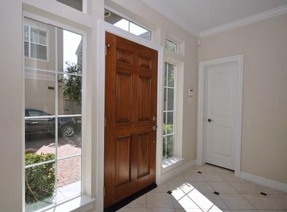 Enjoy in-town living in contemporary enclave of 3-story, free standing homes in West U. Short distance to Rice Village,shopping, dining. 10\'ceilings, open plan, granite baths & kitchen, SS appliances,brkst bar, Plantation shutters, hardwoods & surround sound on 2nd & 3rd floors. 1st floor ensuite BR or study. Elevator capable. Gaslog fireplace in Den. Corner lot with back & side greenspace. Extra parking, 2-car garage. Insulated windows, radiant attic barrier. Sophisticated curb appeal.