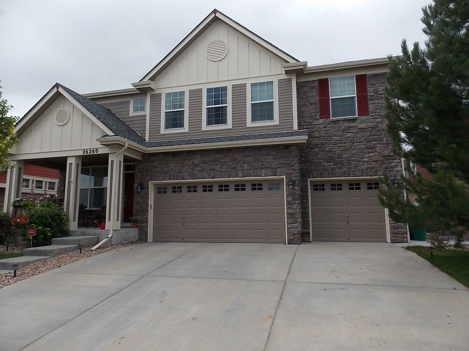 Cherry Creek Schools! BEAUTIFUL single-family, 2-story home with fully finished basement and incredible outdoor living space! Your future home offers 4 Bedrooms and 4 Bathrooms, and hardwood floors throughout (except basement). The main level has semi-formal Living and Dining Rooms, a Family Room with a cozy gas fireplace, and a gorgeous eat-in Kitchen. The kitchen features Quartz and solid-surface countertops with decorative tile backsplash, sleek black appliances, and a large center island with additional seating x6. Upstairs, you'll find a spacious Loft, and 4 Bedrooms, including the Master Suite, which features a private 5-piece bathroom, and a gas fireplace. The finished basement is ready for game day and family movie nights--full wet bar, room for game tables, and movie screen with the projector! The back yard is your private playground, with a covered back deck--set up a grill, fire pit, TV screen, and patio furniture, and entertain! Ideal location--just mins to shops and restaurants; walk to schools.