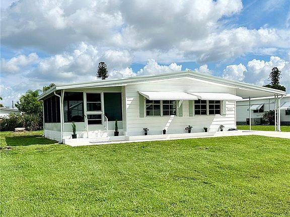 Discover modern living in this newly remodeled 2/2 home with a garage, located in the Imperial Harbor 55+ community. This home features an open floor plan with 100% laminate flooring throughout, providing a seamless flow from room to room. The kitchen is a chef’s dream, featuring granite countertops, stainless steel appliances, a breakfast bar, and a dining table area. All kitchen appliances are less than three years old. The master suite is a sanctuary with its raindrop walk-in shower, dual sinks, granite counter, and walk-in closet equipped with wood shelving. The guest bathroom also features a walk-in shower and a granite countertop, ensuring comfort and luxury for visitors. Enjoy the Florida lifestyle on the screened-in lanai with tile flooring. The home also includes sliding French doors that lead from the garage into the house. Additional highlights include new vapor barrier (2023) a carport, utility room with a washer and dryer, and ample storage space. Club membership included. This exclusive membership provides access to the Harbor Club: fitness center, pickle ball, bocce, shuffleboard, billiards, and more. Don't miss this opportunity to own a beautifully updated home in a vibrant and active community.
