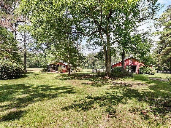 Sprawling 52-acre country paradise w/ 1.3 acre stocked pond w/ gazebo & dock, 150-yard shooting range & fruit tree orchard. Main house has 3 beds/2 baths + attached 753sq ft mother-in-law suite w/ living room, kitchen, bedroom & full bath. This farmhouse has charm for days, including soaring 18' ceilings on first floor. 1300sq ft guest house w/ kitchen, 4 beds/2 baths that sleeps 20. Barn w/ stables & storage shed & chicken coup equipped w/ running water & heat lamps. Take nature walks down the azalea-lined driveway or down to Little Silver Creek to relax on the white sandy beach. Spend nights outside under the confederate jasmine covered pergola or by the firepit while grilling in your outdoor kitchen, all while taking in the beautiful views of the pond & surrounding pastures. Levee built on property. Wired for generator. 3 year-old roof. Too many features & amenities to name- see attached list. Come live the good life at this spectacular, one-of-a-kind estate.