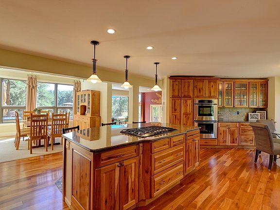 It is rare that photos are not as notable as the home itself, yet this is one property you must see and experience to truly appreciate. Complete remodel with gourmet kitchen boasting high-end appliances, granite countertops with island and cherry cabinets, floor to ceiling windows in the dining room open up to the extraordinary outdoor living design with built-in gas grill, waterfall feature, hot tub, and natural rock outcroppings. Three of the four bedrooms are en-suite with the 4th just steps away from the full size bathroom. Spacious master with 5 piece, his and her closets, a stack-able for a second laundry, reading/tv area and balcony with mountain views. Upper bedroom is without a closet, so it is non-conforming. Attached 3 car over-sized garage with high ceilings and detached workshop/studio complete this private property nestled on 3.63 acres.