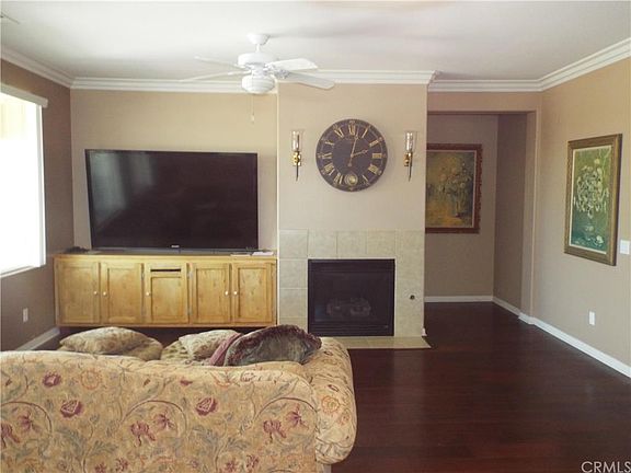 Exceptional highly upgraded and customized "Over 55" home on an oversized private lot in a fabulous gated community. Great curb appeal with HOA maintained front yard landscaping. Custom paint, designer engineered wood and tile floors plus crown moldings throughout. Grand foyer with soaring ceiling. Separate office/den with a glass door, tile floors and ceiling fan. The fabulous great room has stunning wood type floors, tile fireplace and built-in cabinets. The beautiful bright open kitchen features granite countertops, a big center island, breakfast bar, tile floors and a large dining/dinette area with a door to the covered patio. Convenient 1/2 bath for guests. Elegant view master bedroom with wood type floors, ceiling fan and door to the covered patio. The magnificent master bath has a dual sink vanity, tile floors, big shower, custom tiled walls & carpeted walk-in closet. Private guest suite with it's own full bath, tile floors, ceiling fan and mirrored closet doors. The huge laundry/hobby room has a desk, sink & cabinets galore. Extraordinary rear yard, solid patio cover, carriage lights, ceiling fan, big raised stone planters, lush gardens, trees & fountain. Deep garage, storage cabinets, workbench. Low Taxes. Clubhouse, BBQ area, pool, spa and gym.