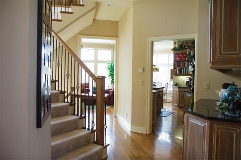 Wonderful 1.5 story. Original owner. Many updates. 15' ceiling in living room. 3 fireplaces. Butler's pantry. Granite and Corian countertops. Each bedroom has walk-in closet. Lower level features slate flooring. Extensive bookcases in LL family room. Possible au pair suite with 2nd Kit, 5th bdrom, and private full bath. 2 decks. Great landscaping. Dir: K-10 to Cedar Creek Parkway. South to Cedar Niles Blvd. Turn right and follow to 111th Ter. West to home.