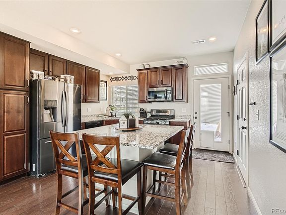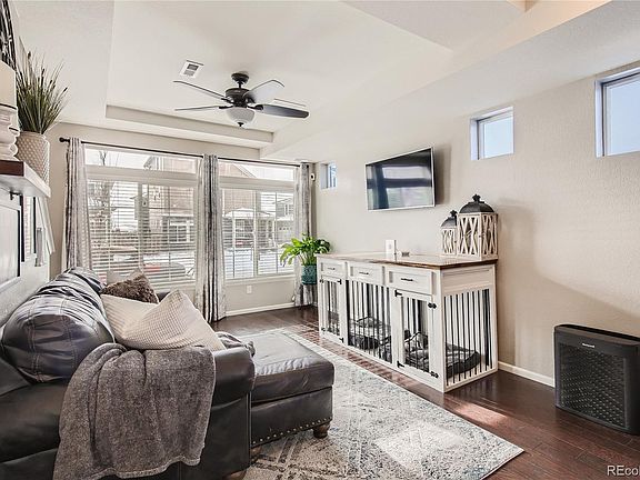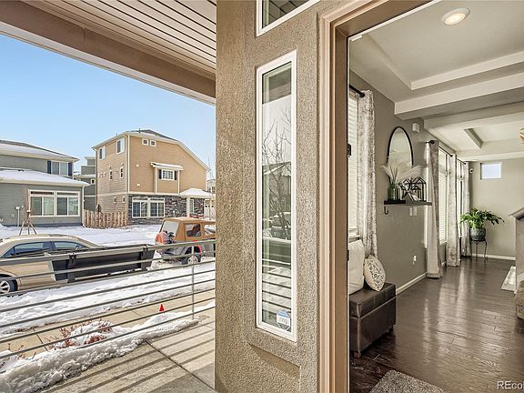 Welcome home to this amazing Adonea Oakwood “Randem” model. 3 years new and featuring several upgrades since being built to include some new updated appliances, new flooring upstairs, large utility shed, extended patio (26’x 11’3”) and walkway to gate + larger extended laundry room & loft. Low to no Utilities with modern solar installed. This Almost new home is located on a corner so that you have ample parking for entertaining and is full of light. The welcoming first floor entry way leads to the main living space which is open to the kitchen with large granite island(with seating for 8) for dining and egress door into the private yard. Upstairs you will find the Master with private bath his and her sinks, bright spacious shower and large walk in closet The secondary bedroom features a full bath with window that has a peak at the mountains . There’s even a bonus room upstairs for a theatre/family room and easily converts to a 3rd bedroom The attached two car garage is perfect for additional storage. The HOA maintains the shared driveway, so no need to shovel snow in the winter months! this lovely home is conveniently located close to the airport and access to E-470 North and South, or I-70 East and West. Only 19 Minutes to Southlands Mall with great food and shopping. Enjoy one of the larger lots in the subdivision with enough grass to play in but not so much that it's hard to maintain. There are fun community events throughout the year including but not limited to: movies in the park, food truck Friday, pool parties, and big events for numerous holiday seasons such as egg hunts, visits with Santa, fall festival, etc. Come see it today!