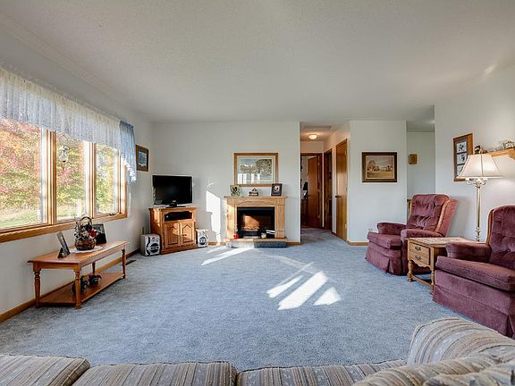 Your place in the country on 40 acres! Rambler with lower level & main level complete living! Kitchen, laundry, and 2 bedrooms on both levels. Main floor has 4 season sun room. Wild live abounds! 38x63 Pole building partially finished for garage/workshop that is insulated & heated. Part is unfinished for tractor & travel trailer! Very nice home- pride of ownership! Home moved on site in 1999 and new foundation & remodel were done. Shingles are 3 years old. Heat pump & furnace are two years old., Directions Hwy I-35 to Exit 165 (Rock Creek) West on Hwy 70, go straight on 120th Ave to Queen Street. Turn South, curves to West. Straight on to 115th.