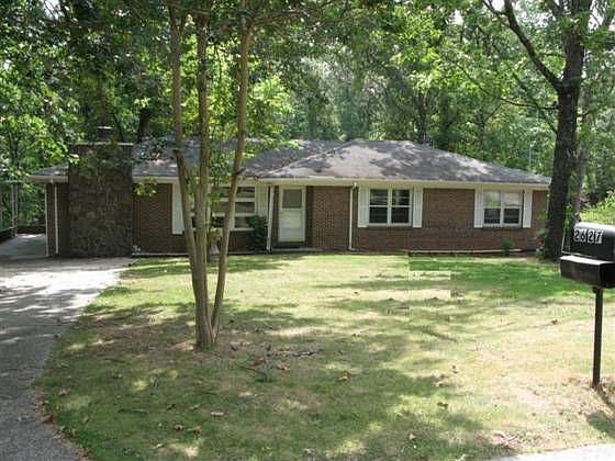 Large 3 bedroom, 2 bath brick home. 1738 sq.ft.(according to tax records). The house is located on a large lot. It has a carport to the right side with a door to the den. On the left side of the house is additional parking space. A nice covered deck on the back side of the house is screened in, great for leisure time outside. The den has a great fireplace in a riverstone wall and wood paneled walls. The combination living-dining room and bedrooms have hardwood floors. It has a master bedroom with bathroom and two additional bedrooms with a second full bathroom. They started finishing the basement with drywall. This house needs work but will be very nice for a family.