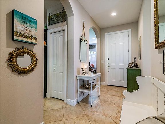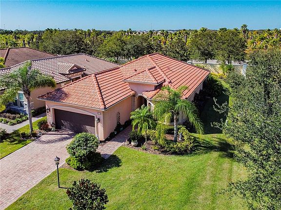 This Florida maintenance-free tropical oasis is waiting for you. This beautiful 2/2 with an addition office/den home has a heated saltwater pool and needs nothing except you, your personal items and touch. Cook your next meal in this beautiful kitchen with granite counters, solid wood cabinets, and stainless appliances. If you enjoy entertaining friends and family, come see how this home opens up completely and flows out onto the pool patio. There is a large open dining and great room with tray ceilings. The master suite is privately located and includes large windows to allow the Florida sunshine to fill the room. The master bath features a double vanity, a large glass enclosed shower and a walk-in closet to accommodate all your shoes and clothes. The home includes plantation shutters throughout, hurricane shutters, a GE Avantapure water softener filtration system, a front screen door which will allow a nice breeze to flow through the entire house. Berber carpet in the bedrooms and den with decorative ceramic tile throughout the other rooms. The community boasts a resort-style clubhouse with fitness center, kitchen, large pool, a fenced dog park, a private park, and is located within a gated community. Centrally located and close to shopping, restaurants, and I-75. Come see your next home!!