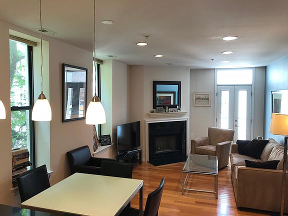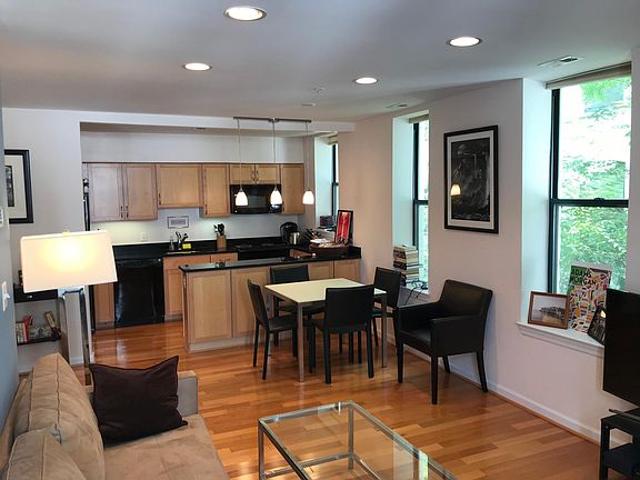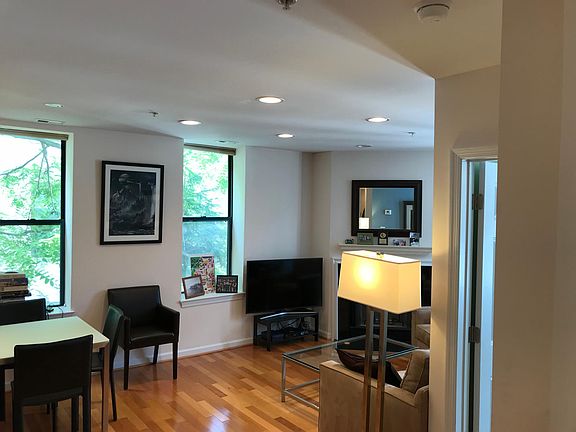 This sunny corner unit features an open concept living area and is located on a tree-lined, residential street, but just a block from the heart of DC's bustling Adams Morgan neighborhood. Excellent space for one person or a couple looking for a quiet home in a central area. Location allows for easy access to nearby parks (Walter Pierce, Rock Creek) and dozens of restaurants, coffee shops, bars, grocery stores, and other retail. METRO accessible: 10 min. walk to red line at Woodley Park, 15 min. walk to green / yellow lines at Columbia Heights. Entry foyer with closet and hall to the living area, woodburning fireplace in living room with French doors that open to Juliet balcony, and wood flooring throughout. The sleek kitchen offers black appliances, light wood cabinetry, and black granite counter; an open serving bar separates the dining area. The bathroom is neutral tile and dark wood cabinetry. The bedroom is carpeted with ample closet space. Address: 2627 Adams Mill Road NW (28-unit condo building) Rent: $2,100 for 12-month lease / one-month security deposit Utilities: Tenant pays electric, cable / internet Bedrooms: One Baths: One Size: 630 sq. ft. Laundry: W/D in unit Floors: Hardwood in living area, carpet in bedroom Amenities: Juliet balcony, rooftop deck AC / Heat: Central Transportation: Walkable to red and green / yellow Metro lines; walkable to a number of bus lines; two blocks from Capital Bikeshare stand; street parking Kitchen: Electric range & oven, refrigerator / freezer, dishwasher, ice maker, and disposal Storage: Storage closet in front hall, large closet in bedroom, storage cabinets in bathroom & kitchen Available: July 1st, 2021. Pets: Cats permitted. Parking: Street Address: 2627 Adams Mill Road NW (28-unit condo building) Rent: $2,100 for 12-month lease / one-month security deposit Utilities: Tenant pays electric, cable / internet Bedrooms: One Baths: One Size: 630 sq. ft. Laundry: W/D in unit Floors: Hardwood in living area, carpet in bedroom Amenities: Juliet balcony, rooftop deck AC / Heat: Central