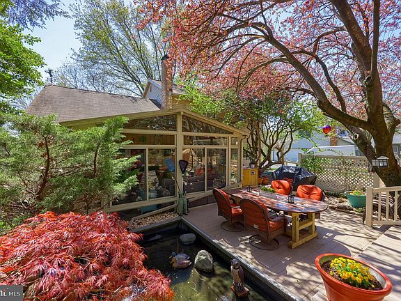 An offer has been received and Sellers have set deadline to submit highest and best offer for April 16 at 7 pm.*Charming 4 BR, 2.5 Bath Colonial two-story with full front porch/stamped concrete floor nestled on mature landscaped lot featuring natural stone walls & Japanese Garden with several ponds, two tier deck with bar for outdoor entertaining and relaxation*Remodeled Kitchen opens into DR, features breakfast bar, large window overlooking rear yard*1st floor family room with cozy brick fireplace*Opens into 3 season Sunroom*Living Room & Finished family Room in the Basement*2car garage