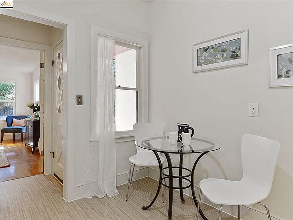 This generous 2 bedroom/1 bathroom condo with over 900 square feet of living space feels like a real home. Simple eat-in kitchen, pretty wood floors, and good light. Large rear bedroom could be great with a slider to the big back yard where you'll find fruit trees and flowering shrubs. Lots of storage: closets and cabinets in every room, plus additional space in the basement garage. Convenient location, close to campus, one block from College Ave, just below Clark Kerr. "Walk Score" 82.