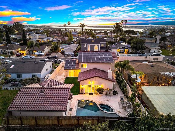 Welcome to this beautiful turnkey home with peak ocean views and fully paid solar perched on one of the most sought after streets in the highly desirable neighborhood of Bay Park! The open concept is bright and features an incredibly large kitchen and family room, and flows seamlessly into the backyard where a heated saltwater pool & spa await in an amazingly private setting. The backyard also offers a large play area with turf and an oversized gated driveway, all on a large lot.
