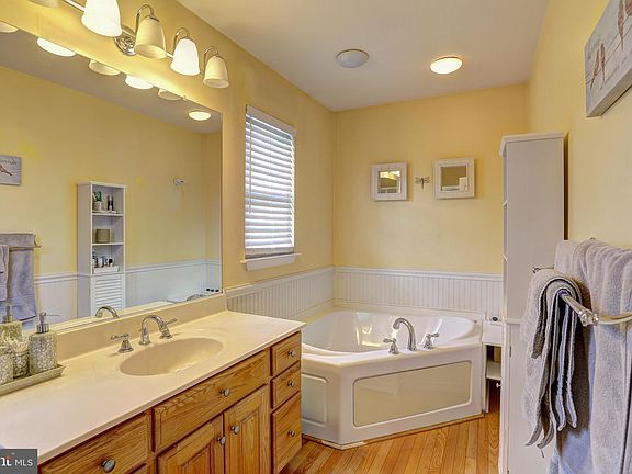 PRICE IMPROVEMENT. Come check out this charming two-story house featuring four spacious bedrooms and hardwood floors throughout the 1st and second floors. Three full baths and the half bath is located on the 1st floor. The open concept of the kitchen and dining room creates a great entertaining space! Walk into your new home, hang your jacket in the coat closet and enjoy your gas fireplace in the cold months or walk through the French doors to your freshly painted large deck with a fenced in backyard. Master bedroom features two large closets and master bath with jacuzzi tub. The finished basement has access to the backyard, additional living space, bedroom with full bath and laundry room. This home has all the storage space you need with basement and attic space and plenty of closet space throughout. Welcome to your new home on a quiet street just minutes away from 695 and 95 and close to downtown Baltimore for a night out on the town!