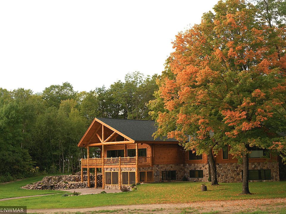 Your opportunity to own the prestigious Woodhaven Retreat on Leech Lake Sucker Bay. This stunning custom Minnesota Log Home is perfectly nestled on a private peninsula with just under 44 acres and over a half mile of lakeshore with a 100' of sand beach, a private road, and surrounded by 1000's of acres of public land. This 5 bedroom, 6.5 bath, 8,495 sq ft home features custom hand scribed rustic log railings, high-end chef's kitchen, custom hickory cabinets and granite countertops throughout, hickory hardwood floors and custom windows with perfect views of the lake and sunsets. Come relax by the beautiful stone fireplaces nestled up with a hot cup of coco and melt away in the hot tub while you watch the bright stars on a clear evening or end your day in the sauna. Elevator & laundry on both levels makes this perfect for all ages. Perfect for year round activities including boating, hiking, snowmobiling, and more! Includes detached garage with extra sleeping quarters, cabin & gazebo.