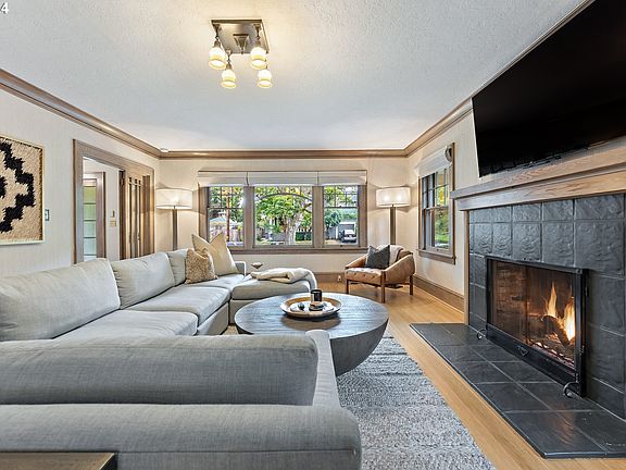 Classic elegance with a contemporary flair. Grand Cape Cod in the heart of Irvington with a welcoming cover front porch that runs the full length of the home. The expansive light filled living room with period fireplace opens to the spacious dining room complete with original built-ins and moldings. Original hardwoods and mill work are present throughout the main level. The chef’s kitchen offers unique porcelain counters and solid surface backsplash, a commercial six burner, double oven gas range, custom cabinets, wine refrigerator, butler’s pantry and hardwood floors. The adjoining den, with a second original fireplace, is open to both kitchen and the living room. A spacious entry with built in seating and a beautifully updated powder room complete the main floor. The upper level provides room for four spacious bedrooms with refinished original fir floors and full bath. The finished lower level offers a fifth bedroom, family room, full bath with walk-in shower, separate laundry room, and hidden finished storage areas. The original porte cochere covers the driveway that leads to the oversized garage and low maintenance fenced backyard. Updated electrical & plumbing. New roof in 2024. [Home Energy Score = 1. HES Report at https://rpt.greenbuildingregistry.com/hes/OR10231426]