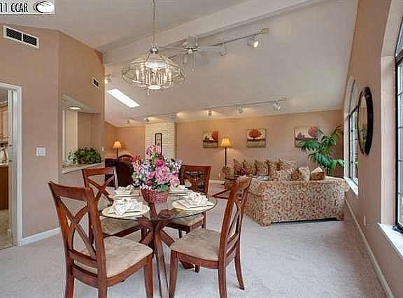 Located on a tree-lined street, close to schools, BART, hospital, Whole Foods, shops, this custom home has an open floor plan with living, family room; dining rooms designed as a great room. Vaulted ceiling, skylights, energy efficient solar, ceiling fans, dual pane windows, hardwood flrs, new carpeting, fenced yard. Renter pays for all utilities. Access to community pool available. Prefer tenants with excellent credit scores (700+).