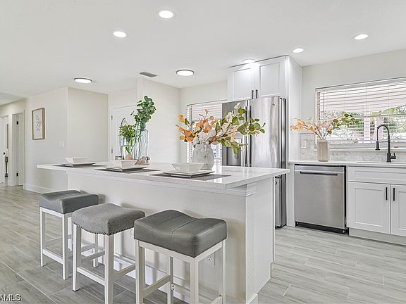 Welcome Home, this House is an absolute showstopper! The property has been totally renovated from top to bottom. Step inside, amazing wood plank tile throughout the entire house with 5 inches base board give it just right modern feel it. Huge space with Open concept kitchen gives it great practical space for family and friends gathering and party. The kitchen carries brand new hardwood cabinets with soft closing features, a big island, stunning custom hood beautiful quartz countertop, and marble backsplash as well as stainless steel appliances. Bathrooms have been totally redone with new tile showers, new toilets, new vanity, and brand-new LED lighting throughout the entire house. The property also has a new metal roof, and a new water heater gives it peace of mind. Property handled well from hurricane Ian; it did not get flood. The great seating area is step away from the big open lanai. A huge concrete pad overlooks the big practical backyard provides endless Florida outdoor living lifestyle. Property is in a quiet neighborhood with easy access to all the restaurants and grocery stores. What are you waiting for?