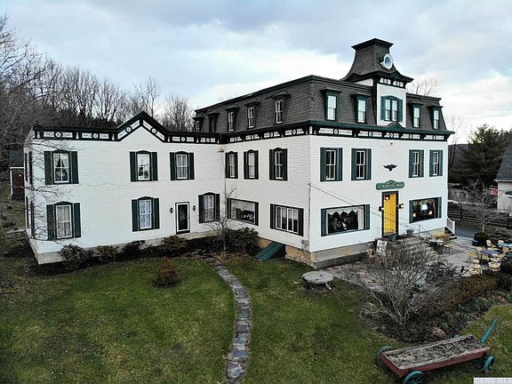 Historic Mount Washington House, circa 1881. Currently owned and operated by the same family as a tavern / restaurant and inn since 1972. The future potential of this iconic structure is massive. The 14,000 sq.ft. three-story building offers exceptional potential as an event center, boutique hotel or B&B, multi-family housing, mixed use retail/residential or whatever your business model calls for. Original details resonate throughout this Mansard Victorian on over two acres. The tavern features a handcrafted mahogany bar, original antique oak walk-in cooler with ice attic and pocket doors. The inn features 26 single bedrooms, 15 baths (9 working and 6 not currently in use), original wide board pine floors, pressed tin ceilings and walls. Recent upgrades include a new boiler, 400 amp electric service, new rubber roof, hydro-fracked well, tie in to town septic system, covered outside dining area & back patio for additional seating, paved driveway, and three detached rental cabins. The property is a landmark in the Hamlet of Hillsdale, one of Columbia County's most up and coming towns. It is ideally located within two miles of Catamount Ski Area and the Western gateway to the Berkshires. To the West you will find eclectic Hudson NY with its fantastic shops, fine dining offerings and wonderful entertainment options. Beautiful countryside surrounds and it is easy to recognize why Hillsdale is one of the most popular destinations for visitors to Columbia County. An opportunity to own and develop a landmark property doesn't come along often. Opportunities to do so in a hamlet business district like Hillsdale are even rarer. The Mount Washington House beckons a new vision. Will it be yours