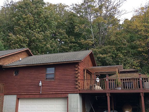 Awesome, panoramic sunset views from the front porch of this Custom Built Log home on 1 1/2 acres in the Town of Virgil. Open floor plan layout with cathedral ceilings and exposed wood beams. Kitchen features granite and solid surface countertops, island, oak cabinetry, new granite sink and faucet. Walk in pantry. Stone fireplace with pellet burning stove in the Livingroom. Maple hardwood and laminate flooring. 12 x 14 rear deck off the kitchen. 3 bedrooms and full bath complete the first floor. The walkout basement features a family room and half bath plus laundry room with utility sink. Attached two stall garage. 22 x 22 deck off the front to enjoy the awesome views. Cedar Spa House for hot tub or additional 3 season living space. New 30 year Asphalt Shingle roof installed 2015. Conveniently located close to Route 13 as well as Greek Peak, Elm Tree Golf Course and Lime Hollow Nature Center.