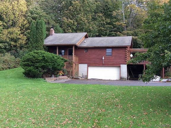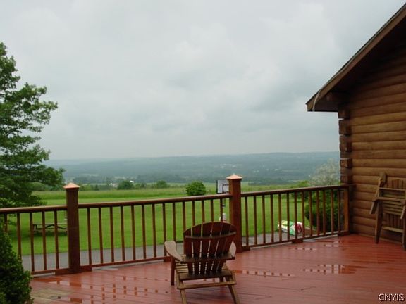 Awesome, panoramic sunset views from the front porch of this Custom Built Log home on 1 1/2 acres in the Town of Virgil. Open floor plan layout with cathedral ceilings and exposed wood beams. Kitchen features granite and solid surface countertops, island, oak cabinetry, new granite sink and faucet. Walk in pantry. Stone fireplace with pellet burning stove in the Livingroom. Maple hardwood and laminate flooring. 12 x 14 rear deck off the kitchen. 3 bedrooms and full bath complete the first floor. The walkout basement features a family room and half bath plus laundry room with utility sink. Attached two stall garage. 22 x 22 deck off the front to enjoy the awesome views. Cedar Spa House for hot tub or additional 3 season living space. New 30 year Asphalt Shingle roof installed 2015. Conveniently located close to Route 13 as well as Greek Peak, Elm Tree Golf Course and Lime Hollow Nature Center.