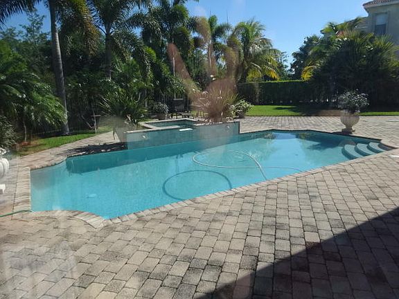 Gorgeous, spacious home on an oversized lot with 3-car garage. Master and 3 bedrooms downstairs plus an office. Upstairs loft with bedroom and partial upstairs kitchen with refrigerator. Travertine tile in the living space downstairs. Step outside and enjoy a pool with a hot tub!! The home is on a preserve and has beautiful views of the lake. Interior does need work including carpet but it's perfect to make it your own. Located right across from the Wellington Green mall and has close access to major shopping centers and the Florida turnpike and i-95.