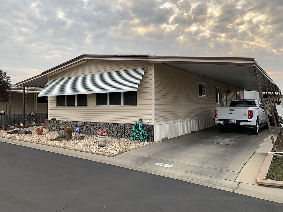 Well maintain, triple wide manufactured home in desirable Senior Community. Corner lot location close to the Club House and recreation area. Two very spacious bedrooms, 2 baths, great room, living room with vaulted ceiling and dining room with built-in hutch. The great room features a wood burning stove and built-ins. The kitchen has a breakfast area and includes the refrigerator. The separate laundry room includes the washer and dryer and has a built-in desk, also it access the carport. Low maintenance yard with large shed. Park Amenities include a beautiful updated Club House, Community pool and heated Spa, dog park, Library, Pickle Ball Court and more.Price to sell!!