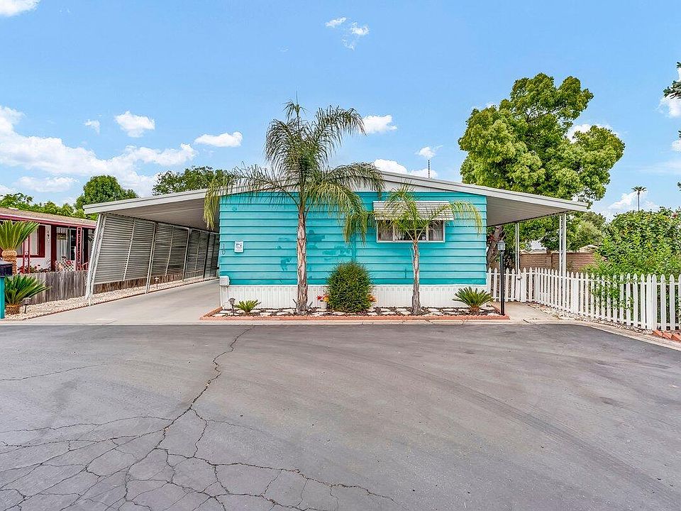 Check out this beautifully well maintained mobile home in the Visalia Estates. Home sits on a large corner spot. Property has a large carport, and a spacious covered patio, perfect for relaxing or entertaining. This cute home features 2 bedrooms, 2 baths, indoor laundry, a storage shed to provide added space for your tools and or hobbies. Located in a 55+ community. Residents have access to great amenities including a fitness center, swimming pool, spa, pickleball court, bocce ball court, dog park, clubhouse with fireplace and TV area. luxurious kitchen, large dining room, pool room, library and media center, covered patio with shuffleboard courts, covered parking, RV storage space. Close proximity to shopping center areas, restaurants, and short drive to the Tulare Outlets.