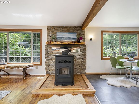 This magical property is a slice of paradise! The home lives large with an open, flexible floorplan and natural light pours in through skylights. The kitchen features custom hickory cabinets, new appliances and a gorgeous wood burning cooking stove that is both functional and pleasing to look at! Enjoy the view of your land from the comfort of your decks or covered patio, walk across the foot bridge to the other side of the pond hike and play, or drive your ATV across the steel bridge over the creek to explore the other side of the property. A fenced garden area is prepped for your summer vegetables and there are mature grapes, cherry and apple trees to satisfy your fruit cravings. The main floor bathroom features a large walk-in shower plus a huge storage area with open wood shelves for linens and toiletries. The lower level stays cool all year round, has a separate entrance, its own covered patio, and there is a wet bar sink and kitchenette area for your art studio, party room or in-law quarters. Plus there are laundry hook-ups on both floors for convenience. After enjoying your morning coffee on the deck, work the day away in the detached heated shop with a huge sliding door, ideal for moving large machines and automotive work. The detached garage has room for even more storage. And if you want to be self-sufficient, there is a stand-by Generac brand generator, so you can go completely off the grid!
