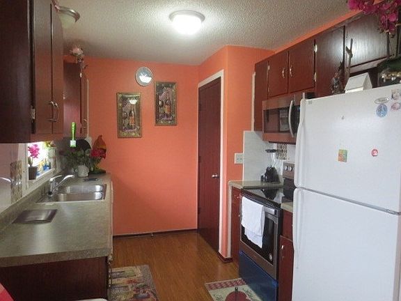 - Kitchen: Dishwasher, Refrigerator, Microwave, Laminate Flooring, Eat-In