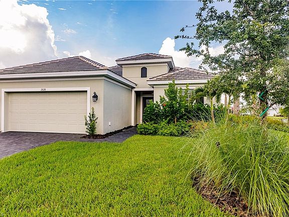 YOUR SEARCH IS OVER THIS ONE TRULY HAS IT ALL! OVERSIZED CORNER LOT, EXTENED SOUTHERN EXPOSURE LANAI EXTENDED 4' GARAGE EXTENSION and that's not all. This popular SANDBAR model has over 100K in builder upgrades! The home has 3 beds 3 baths with den with one bedroom providing an ensuite bathroom/bedroom combination. The gourmet kitchen is fabulous with it's upgraded stainless steel appliances that include Convection Wall Oven, Apron sink, Level 5 Quartz Flat Island Countertops with kitchen island sink, under counter lighting, Upgraded Soft Close Drawers and Cabinets with 42" uppers, complimentary glass backsplash and contemporary pendant lighting. Inside you'll find upgraded laminate wood throughout the main living level 5 carpet and tile in other areas. The home also has 5 1/4" crown molding and 5 1/4" floor base. The master bath has dual sinks, upgraded cabinets, granite countertops and an extra large shower with gorgeous upgraded tile. The EXTENDED lanai has a rough in all ready for your summer kitchen and because the lot is an oversized corner lot there is plenty of room for a pool with cage and fence. The garage has plenty of room for all your toys with it's extra 4' extension.