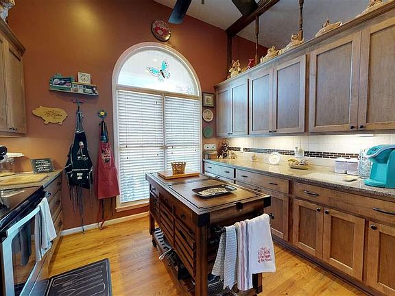 Welcome home to the desirable neighborhood of Parkland! Conveniently located on a corner lot with over a half acre and a large welcoming front porch. This 3 bedroom, 2 bathroom home has been beautifully updated. The updates in the kitchen include granite counters, stainless steal appliances, new cabinets, tile backsplash, bronze sink and fixtures. The kitchen features an abundance of counter space, tall open ceilings and counter seating. The owners suite bathroom is also fully updated with a tile shower and custom sliding shower door, garden sized bubble tub, tile floors, granite counter with a new double vanity, light fixtures and hardware. Additional features of this home include, cathedral ceilings throughout the main living spaces and owners suite bedroom, large dining area and eat-in area, both open to the kitchen, beautiful brick fireplace, hardwood floors and a large laundry room. Exterior features include a fully fenced backyard, storage shed and carport, and a large deck for relaxing! Don't delay in seeing this beautiful home the location and tasteful updates are sure to impress you!