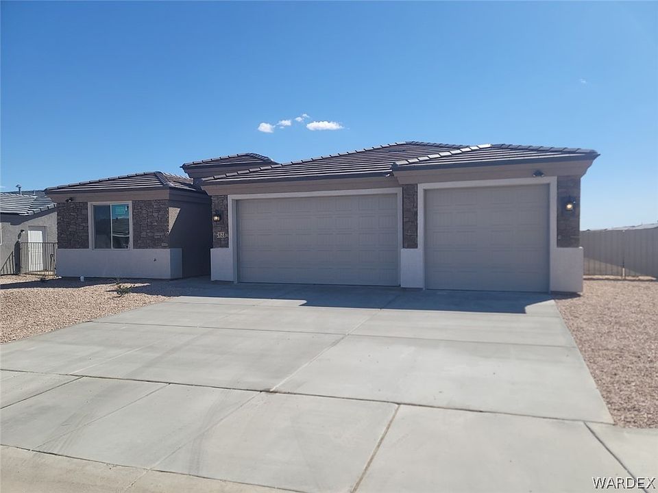 This brand new home, (a Desert Rose 1472 - 3 Car model), has a two/ten year new Home Buyer's Warranty. This home includes many upgrades: an open floor plan, split bedrooms, inside laundry room, a walk-in closet in the master suite, beautiful granite counter tops, tile roof, block wall, private back yard with drive-through gate, front yard landscaping with automatic watering system, and many more features. Broker is the owner/seller