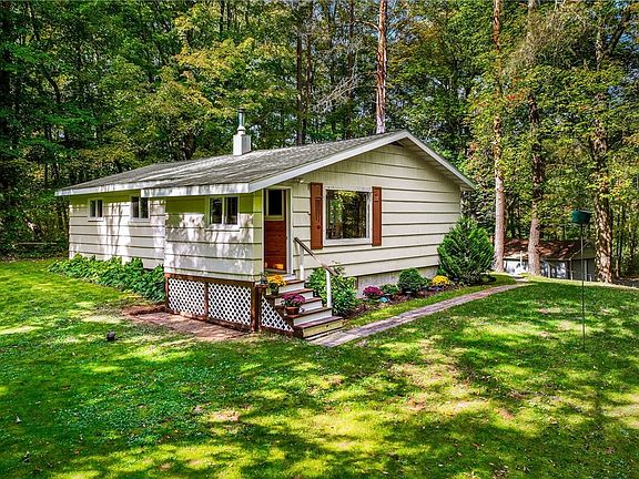 Stunning mature trees and gorgeous pond view from this 1.46 acre lot. The house is set back from the road and surrounded by beautiful trees making the home and property extremely private. The detached two car garage offers plenty of space for parking and storage. The house has a newly renovated, modern bathroom and mudroom. This three-bedroom ranch offers lots of cozy charm. The full basement has a workshop area and a rec room with a bar. Close to everything, this property is only 5 minutes from Baldwinsville, Phoenix, and from access points to Routes 690 and 481.
