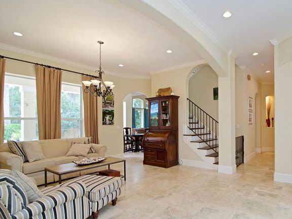 Beautiful, solidly, built, carefully maintained home. First floor block & poured concrete. Light & bright, easy living plan. Kitchen, has granite, a gas range with overhead hood, a prep island w/sink, opens to the family room & access to veranda, salt water pool and gas heated hot tub. Stone and wood floors. Bead corners, wide baseboards & high ceiling are painted a perfect soft adobe white. 3 generous bedrooms up, one used for playroom. Special neighborhood close to the beach, tucked away from the crowds, near the intracoastal, amazing oak trees. Easy access to the airport, minutes to hospitals & the beach. Close to shopping.
