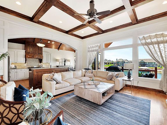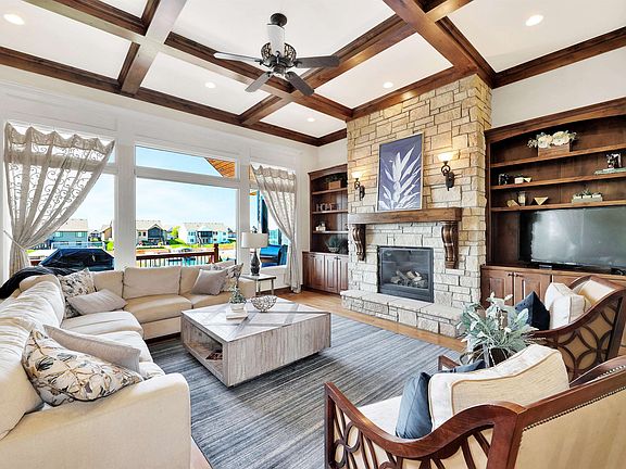 No amenity was spared in this fabulous 5,200+ square foot Craig Sharp built home located in the sought after Emerald Bay neighborhood. The front porch is the perfect vision of what's to come; an abundance of brick, stone, special wood features at every turn, high ceilings and open spaces galore! A coved ceiling foyer welcomes you into the expansive space with a formal dining room, a large family room with coffered ceiling, custom built-ins surrounding a beautiful stone fireplace and windows galore overlooking the lake. The chefs kitchen has all the things: granite countertops, a gas range, stainless appliances, antigen white painted cabinets, a wood planked vaulted ceiling and a spacious walk in pantry. The homes split bedroom plan allows privacy in the fantastic primary suite adorned with more high ceilings and great windows plus a hotel-level luxurious bathroom and oversized custom closet. 2 more bedrooms, a large super convenient drop zone area, the laundry room and 2 1/2 more bathrooms round out the main floor. The full finished walk out basement in this home was made for entertaining! Extra spacious family and game room features a stone fireplace, built ins and a fantastic bar and wine room. 2 more bedrooms, 2 bathrooms and a huge movie theater with its own bar cabinet area perfect for treats before the show! You will be drawn to the backyard with its professional landscaping, built in kitchen, sought after boat dock and YES... room for a pool! (The seller will share the plans they had drawn up). Of course the cherry on top of this fabulous home is Emerald Bays 100 acres of boating skiing lake not to mention the neighborhood clubhouse, pickle ball and beach volleyball courts. Simply put... this home in this neighborhood is truly the whole package!