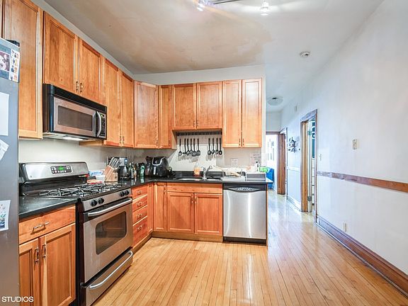 Awesome TOP floor rehabbed 2 bed 1 bath apartment in Logan Square! Central air and heat, updated kitchen with granite countertops and stainless steel appliances. Sun filled living room with 2 good size bedrooms. Common backyard. Laundry in the basement. $65 per person app fee. $700 move-in fee. Available June 15th. Garage parking may be available in the future for $150