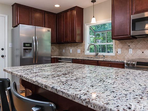 2015 Best Places to Live! Rare opportunity for over an acre in Apex. This updated 2 story home will not last long. New carpet, new paint and more! Kitchen features granite counters, tile back splash, updated appliances and lighting fixtures. Most windows have been updated as well as much of the siding. Huge bonus room and a 3rd floor walk up office. Master has amazing cathedral ceiling, updated fixtures and walk in closet. Huge deck overlooks the private fenced back yard. Large shed and no city taxes!!