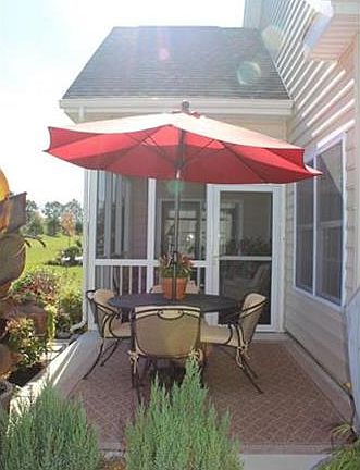 This three bedroom three full bathroom Betsy Ross II Model with Level II Upgrades throughout the entire home sits in Traditions of American at Bridal Path on a $15, 000 lot premium package which over looks the private community garden. 2628 Pioneer Road upgrades include Kitchen countertops, tile kitchen backsplash, gas cook top, single electric wall oven, roll out kitchen island cabinet drawers, lazy susan, 4 recessed high hat lights in the kitchen walk way. Over head lighting with fan accommodation in each bedroom and family room. Gas fire place in the living room. Master bedroom carpet upgrade from private vendor, Screened in and roofed concrete patio. Walk in closets on first and second floor. And much more! Condo Fee includes garbage, recycling, lawn, leaf snow and exterior maintenance plus the use of the common areas such as a clubhouse, pool, spa, sauna, gym, and tennis courts along with organized optional participation of field trips, events and social outings. Two car garage
