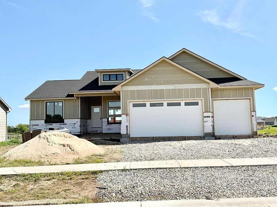 Welcome to Clear Ridge, where modern living meets serene lake views. This brand-new home showcases a contemporary design with high-quality finishes throughout. Step inside to discover a spacious open floor plan with luxury vinyl plank flooring, granite countertops. The main level features three bedrooms and two bathrooms, including a stylish master suite. The living room is highlighted by an elegant electric fireplace, perfect for cozy evenings. Enjoy outdoor living on the covered deck, overlooking the tranquil lake. The basement offers one finished bathroom, with the option to add a rec room and two additional bedrooms at an extra cost, allowing you to customize the space to your needs. This home also includes a three-car garage, a sprinkler system, and lush sod, ensuring both convenience and curb appeal. Don't miss the opportunity to own a beautiful new home in the sought-after Clear Ridge development.