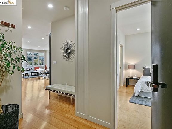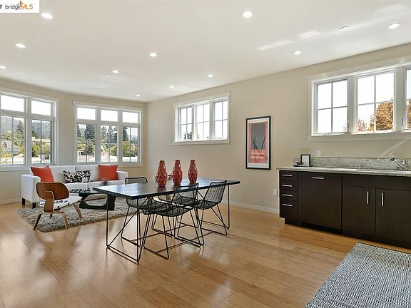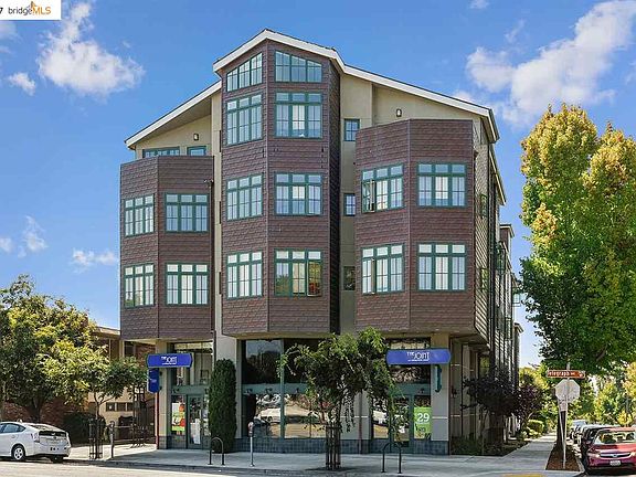 Located between UC Berkeley and a the Elmwood, this is a contemporary and stylish architect-designed building featuring a copper clad exterior. This condo has 2 bedrooms and 2 baths on the 4th floor, and has plenty of light coming through the many windows and views of the Berkeley hills. Bamboo floors and an open floor plan contribute to the bright and sleek feeling of the space. Kitchen features high-end stainless steel appliances (Bosch and Sub-Zero). The Master bedroom has a walk-in closet and a tiled, modern bathroom, while the second bedroom also offers a generous closet and street views. A laundry closet holds a Bosch washer and a dryer. Building features include secured parking, bike storage and a rooftop deck for common use. A great condo in an ideal location!