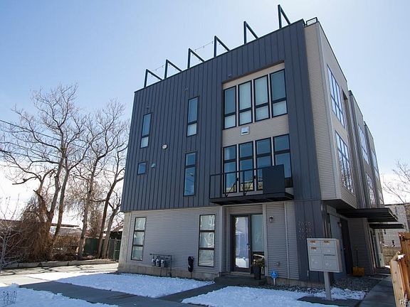 Amazing 2 bed/3 bath townhouse with incredible city & mountain view rooftop deck! Built in 2017. Main floor office, attached 2 car garage. Open floor plan kitchen, dining and living area with half bath. Next level has 2 bedrooms and 2 baths, including beautiful city views from master bedroom. Laundry right off master. Top level is 600 square feet of rooftop with entertaining area that has views to die for. Walk to Mile High stadium, Pepsi Center, Union Station, LoHi, Highlands & Jefferson Park. You cannot beat this location! No HOA.